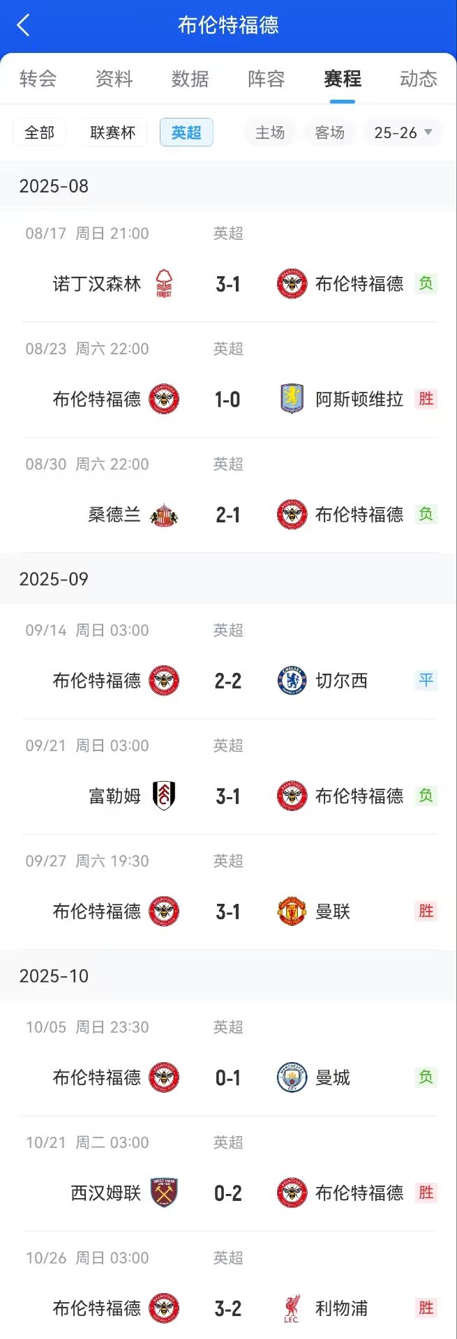 与此同时,布伦特福德本赛季的排名却没能更进一步,这源于他们对阵下游球队时的表现不佳:他们首轮就输给了诺丁汉森林,第5轮又不敌富勒姆,而这两支球队目前只分别排名联赛第16、18。