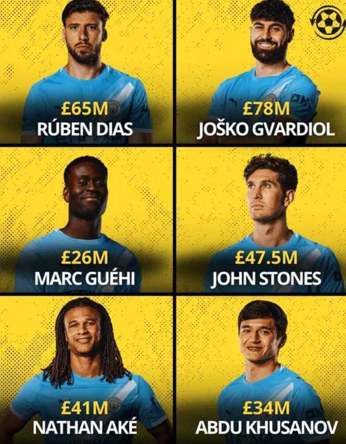 由于曼城多名中卫受伤,所以球队不得不引援补充人手。现如今,曼城中卫储备有迪亚斯,格瓦迪奥尔,格伊,斯通斯,阿克,胡桑诺夫等6人,整条后防线人数将达11人,总身价4.098亿欧。